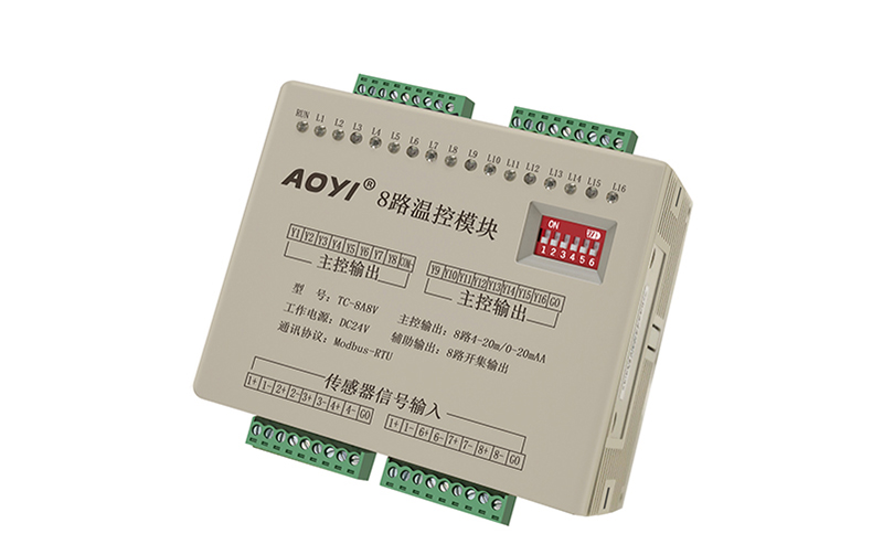 本溫度控制模塊集成了多路溫度采集、多路主輸出和輔助自由輸出。具有PID,自整定,手動(dòng)輸出,上位機(jī)控制等多種控制方式,能方便靈活的組成各種溫控系統(tǒng)。該產(chǎn)品可用于各種需要溫度控制的場(chǎng)合,特別適合于與PLC,觸摸屏組成一體化控制系統(tǒng)或與計(jì)算機(jī)組成分布式控制系統(tǒng)。同一模塊,多根溫度傳感器(例熱電偶)獨(dú)立輸入,實(shí)際多路獨(dú)立溫度采樣;多路獨(dú)立控制輸出(輸出信號(hào)有模塊量,邏輯電平開關(guān)量輸出等,其信號(hào)不同所控制的固態(tài)繼電器不同,即必須與相同控制信號(hào)的固態(tài)繼電器匹配,控制固態(tài)繼電器的輸出電壓或開關(guān)來實(shí)際恒溫。